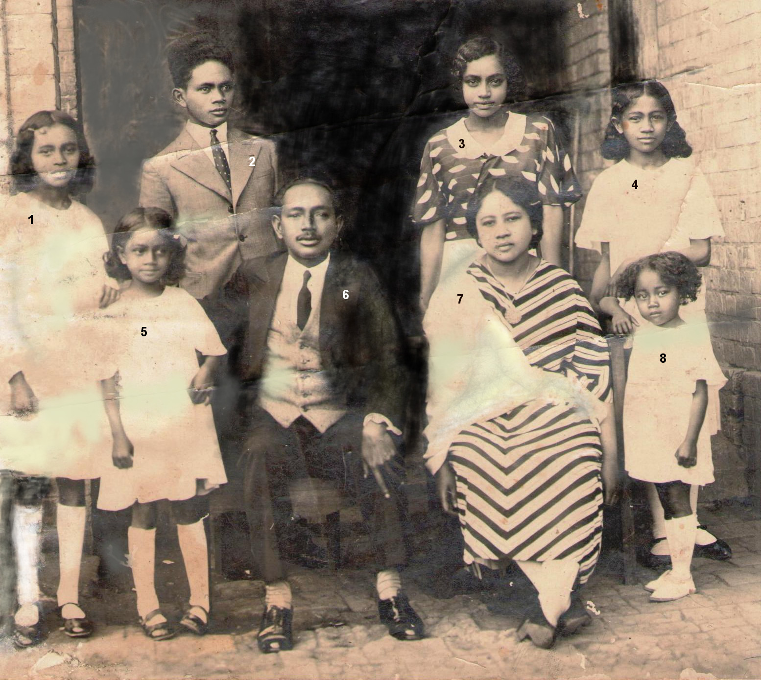| Debout au fond, de gauche à droite: 1-Henriette RAZAFINDRAKETAKA 2-Charles RAZAFINDRAKOTO 3-Louise RAZAFITSARA 4- Claire RAHARISOA. Debout devant, de gauche à droite: 5- Clarice RAFARASOA 6-Justin RAZAKA (assis au milieu) 7-Rtoa RAZANADRAIBE (assise au milieu) 8- Suzanne RAHARILINA. |
